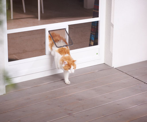 Spezielle Insektenschutz-Produkte von NEHER für Haustiere mit kratzfestem Katzengewebe zur Kombination mit Katzen- oder Hundeklappen. |